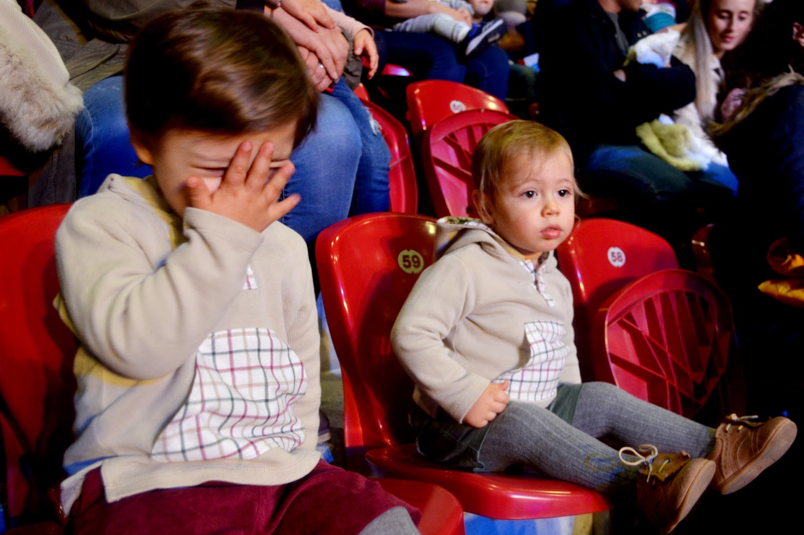 De início eles estavam super excitados, quando viram o Panda e os Caricas ficaram com aqueles olhinhos a brilhar, o Baby FM começou logo a bater palmas e a dançar, já o T assustou-se com a música alta e ficou mais no meu colo, até que depois se soltou e já só batia palmas.